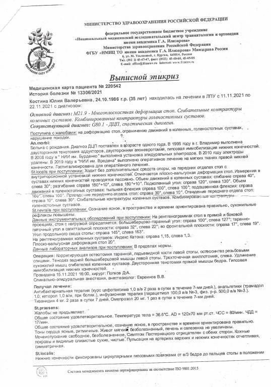 Меня зовут Юлия, и мне 38 лет. К сожалению, при рождении я получила серьезную родовую травму, которая привела к диагнозу ДЦП (нижний спастический парапарез). С самых ранних лет родители делали все возможное, чтобы помочь мне: возили на обследования и различные виды лечения. Я начала ходить самостоятельно в возрасте четырех лет. В семь лет мне была проведена ахиллотомия для коррекции эквинусной деформации стоп. В период с 12 до 14 лет я проходила лечение по методу Ульзибата, в рамках которого было выполнено две операции.
