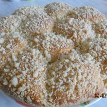 Сначала готовим печенье - 3 яйца, 0,5 стакана сахара, пол ч.л. соли, 200 гр. слив. масла, разрыхлитель, муку брала ржаную, так как она полезней белой, муки столько, чтобы замесилось пластичное тесто. Лепим печеньки - выпекаем минут 20, чтобы зарумянились. Даём несколько часов отлежаться. Затем руками крошим. Делаем крем - банка сгущеных сливок с сахаром, 300 гр.
